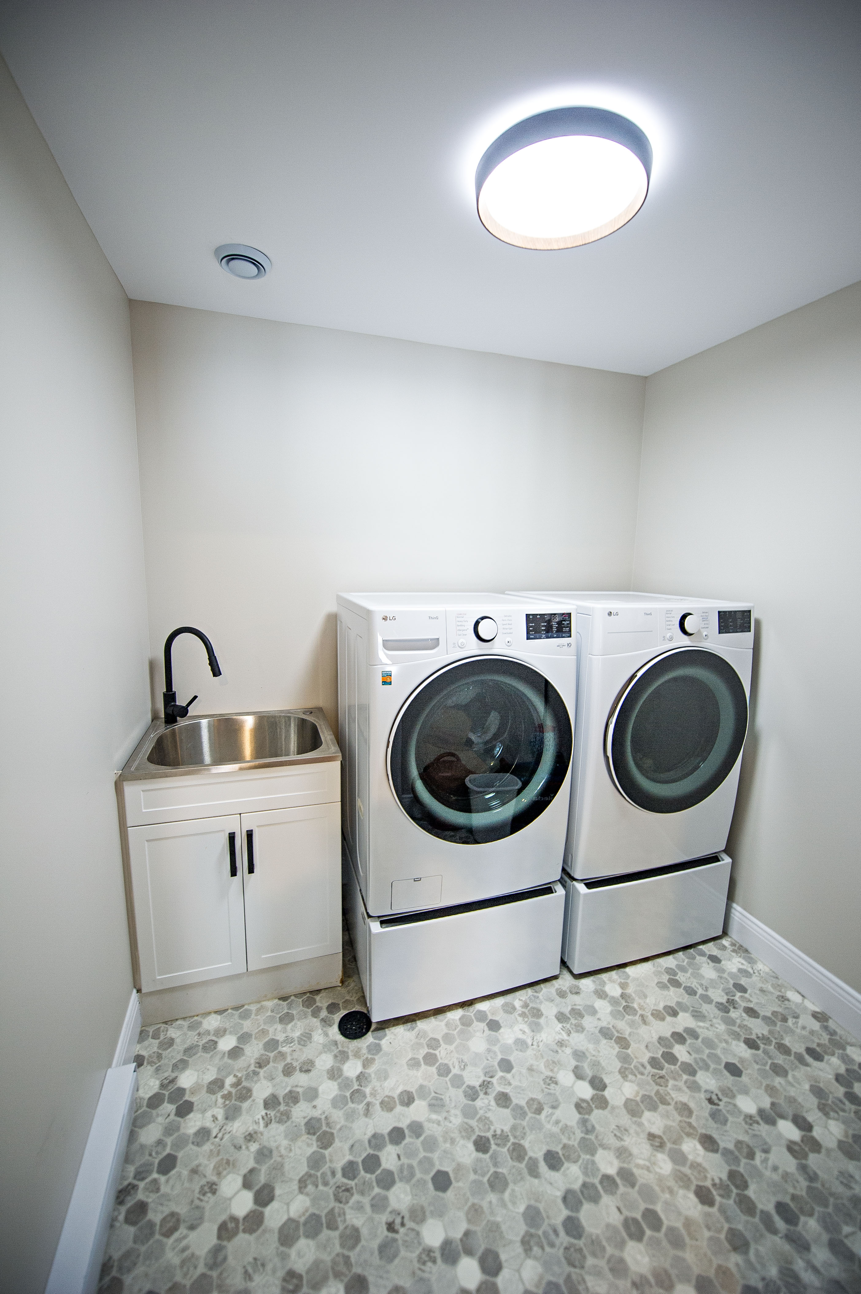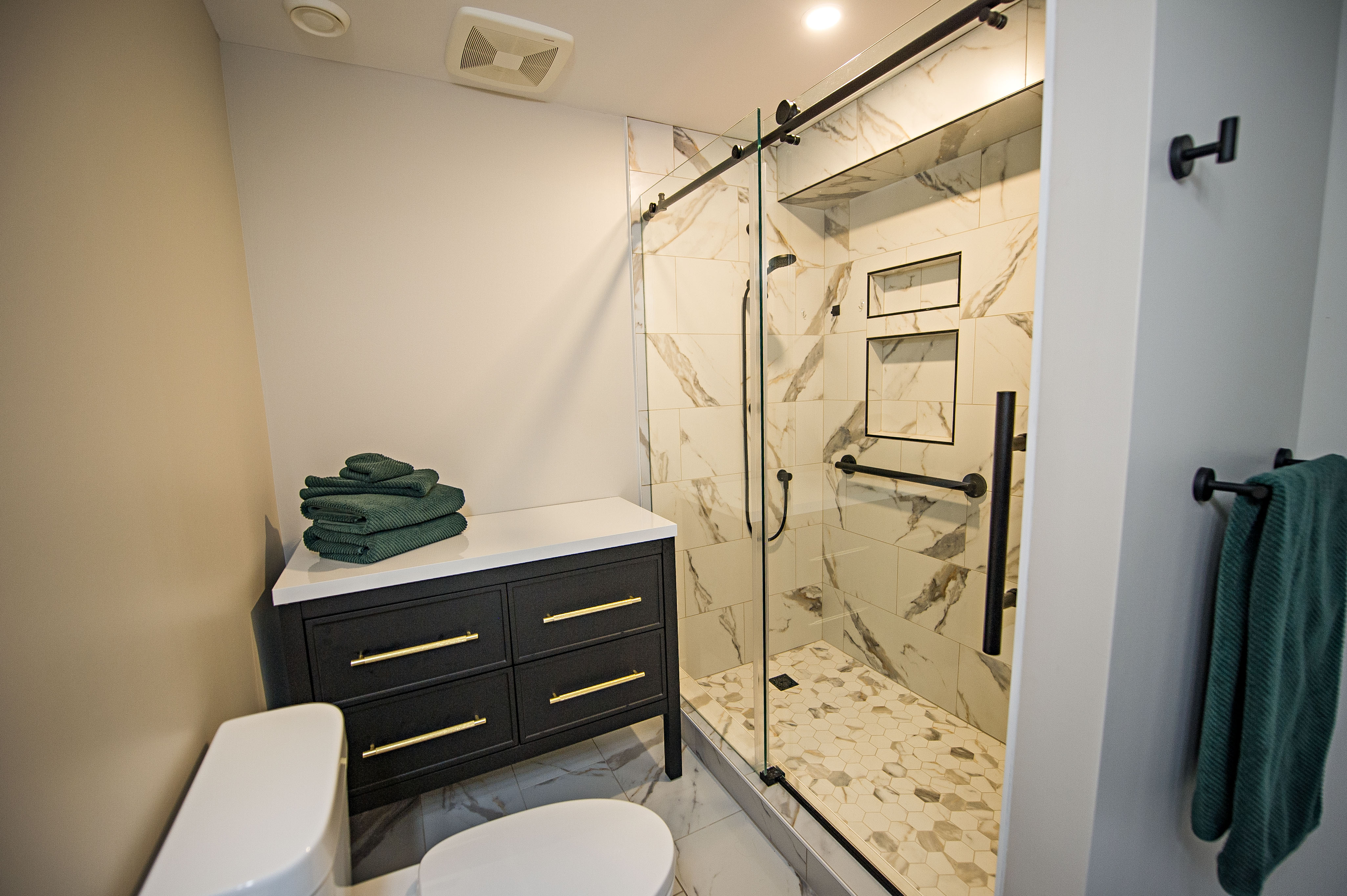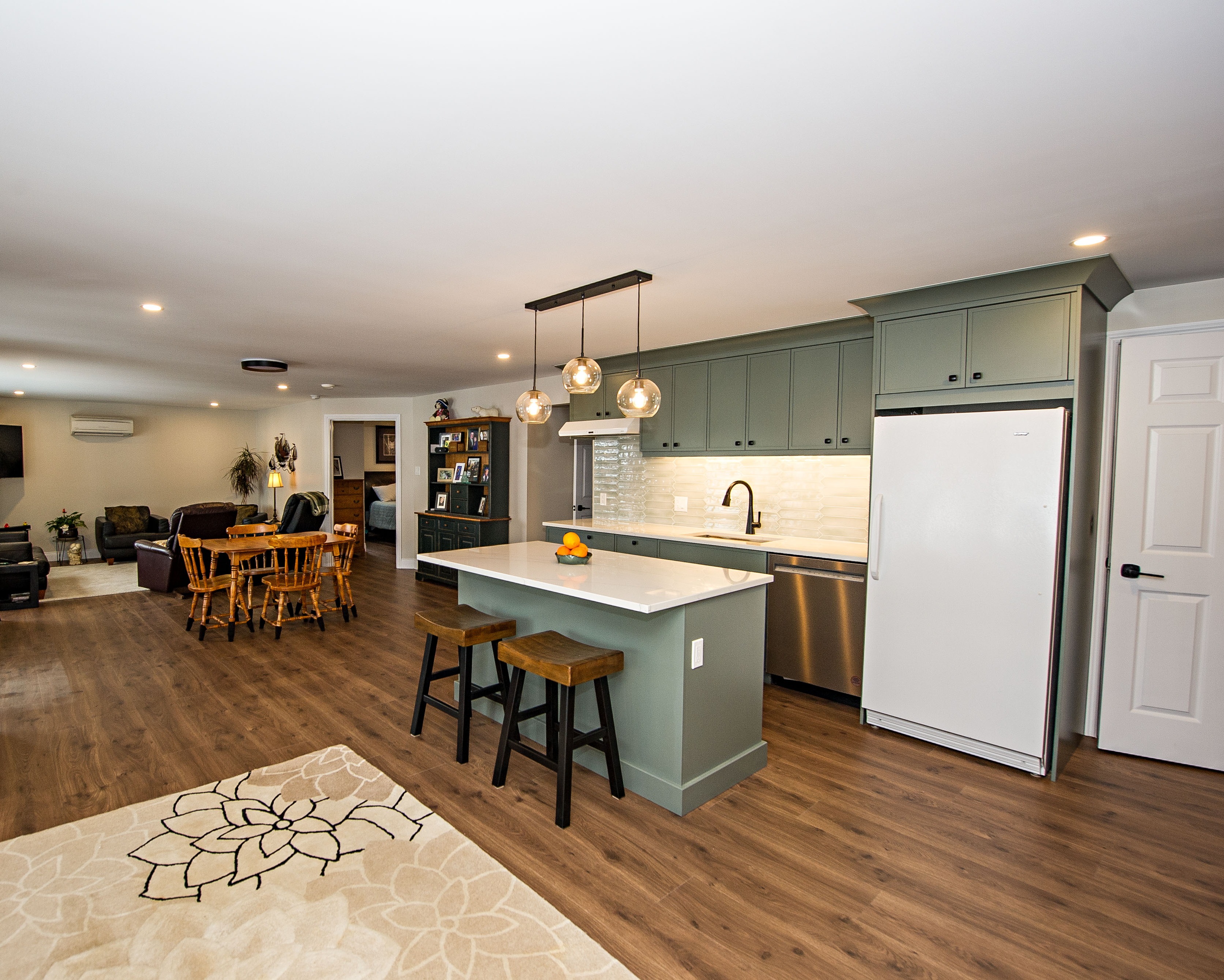 This comprehensive basement renovation, located in beautiful Lake Echo, a short drive from Halifax, transformed an underutilized space into a stunning and functional living area. The project converted a dated basement into a versatile space that includes a modern bathroom, efficient laundry room, private bedroom, flexible den/office, and stylish kitchenette. The original space was characterized by unfinished walls, outdated paneling, and a lack of defined spaces. The transformation now features a bright, open-concept design, contemporary finishes, and clearly defined functional areas. This renovation significantly enhanced the home's comfort and value, creating a perfect space for both relaxation and entertaining.