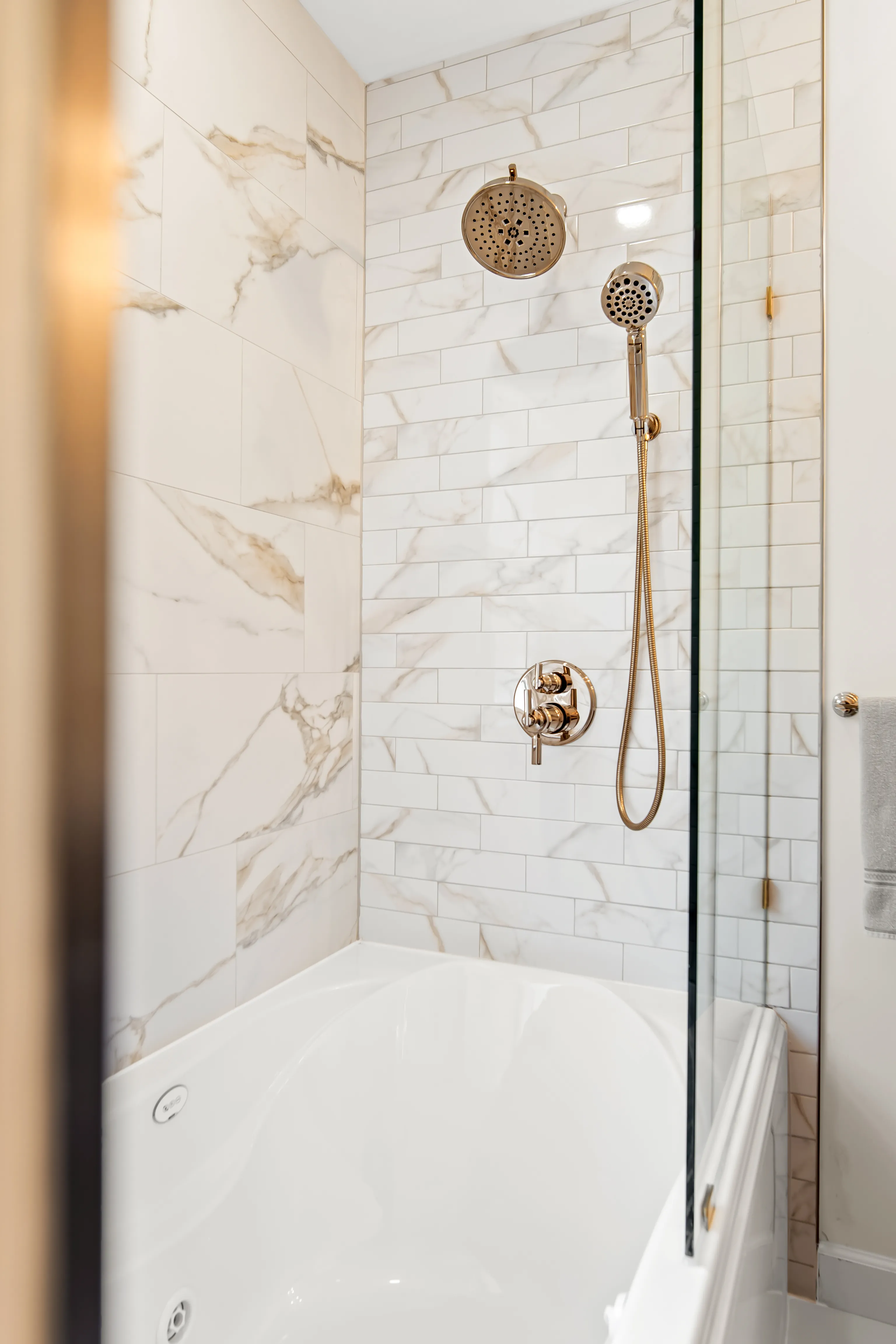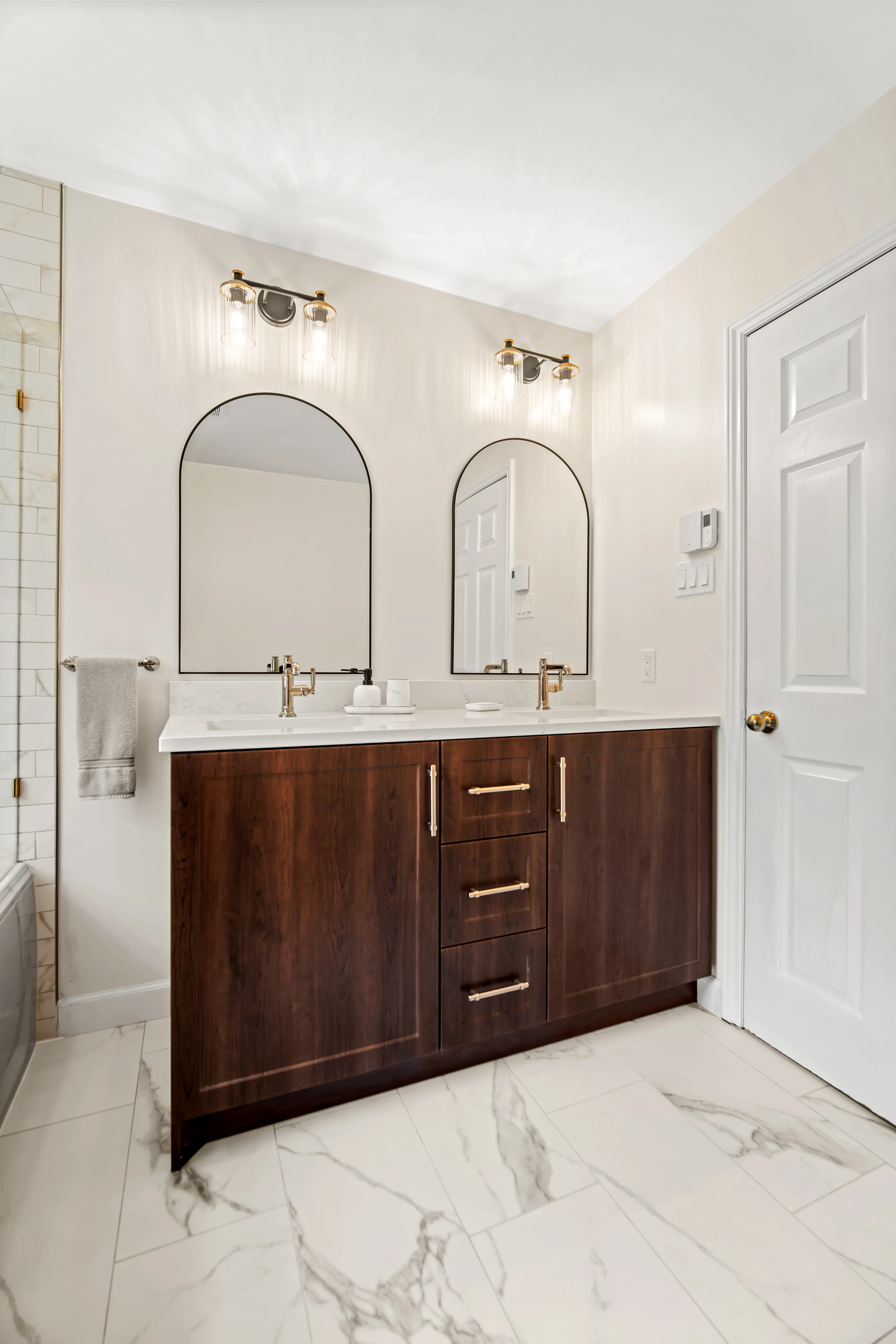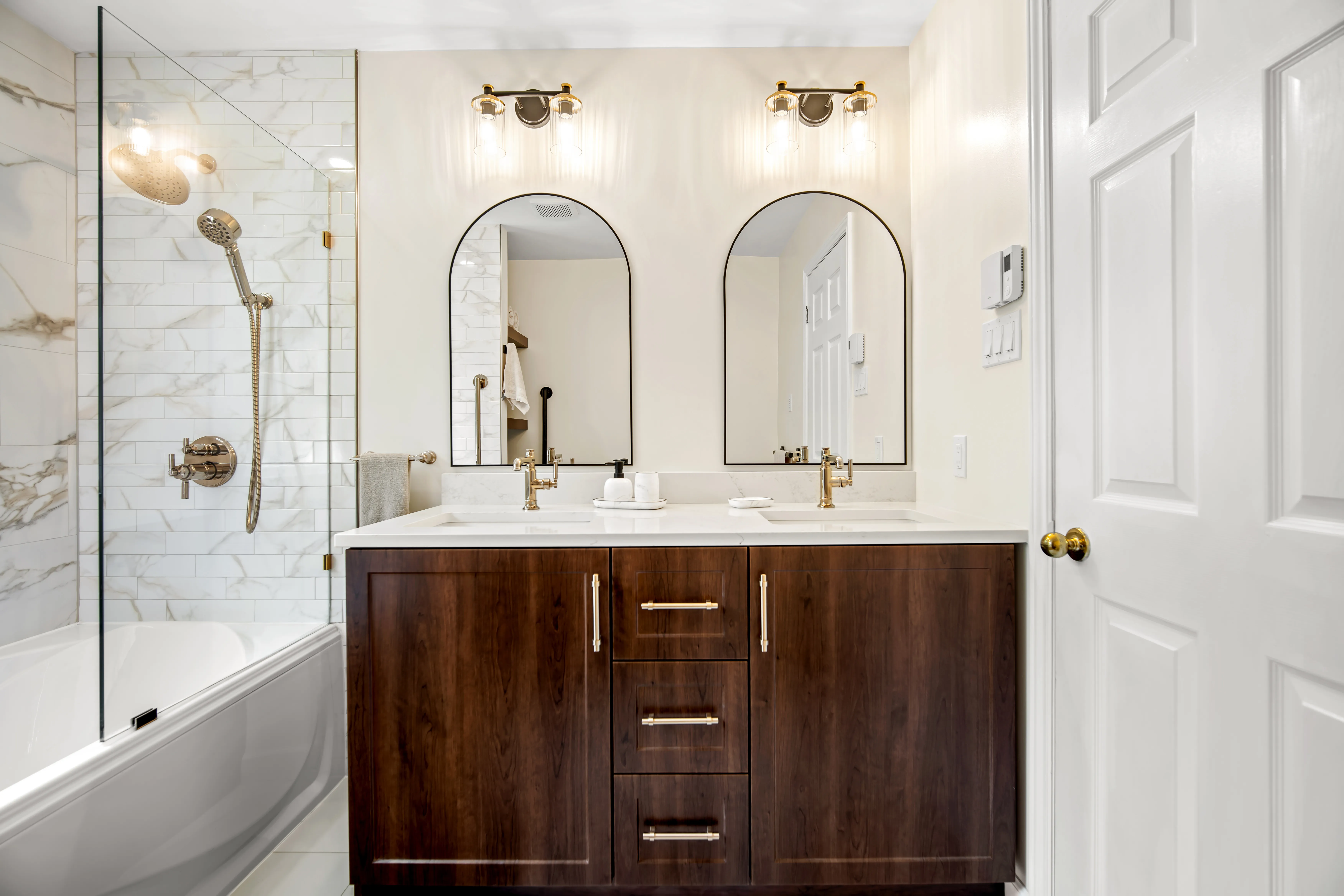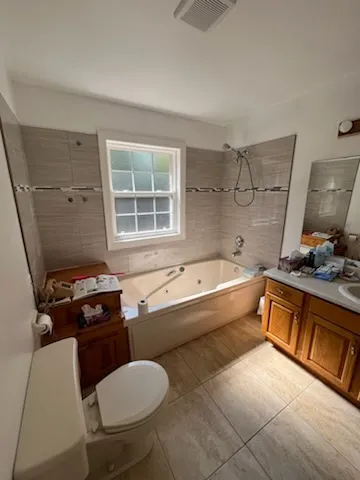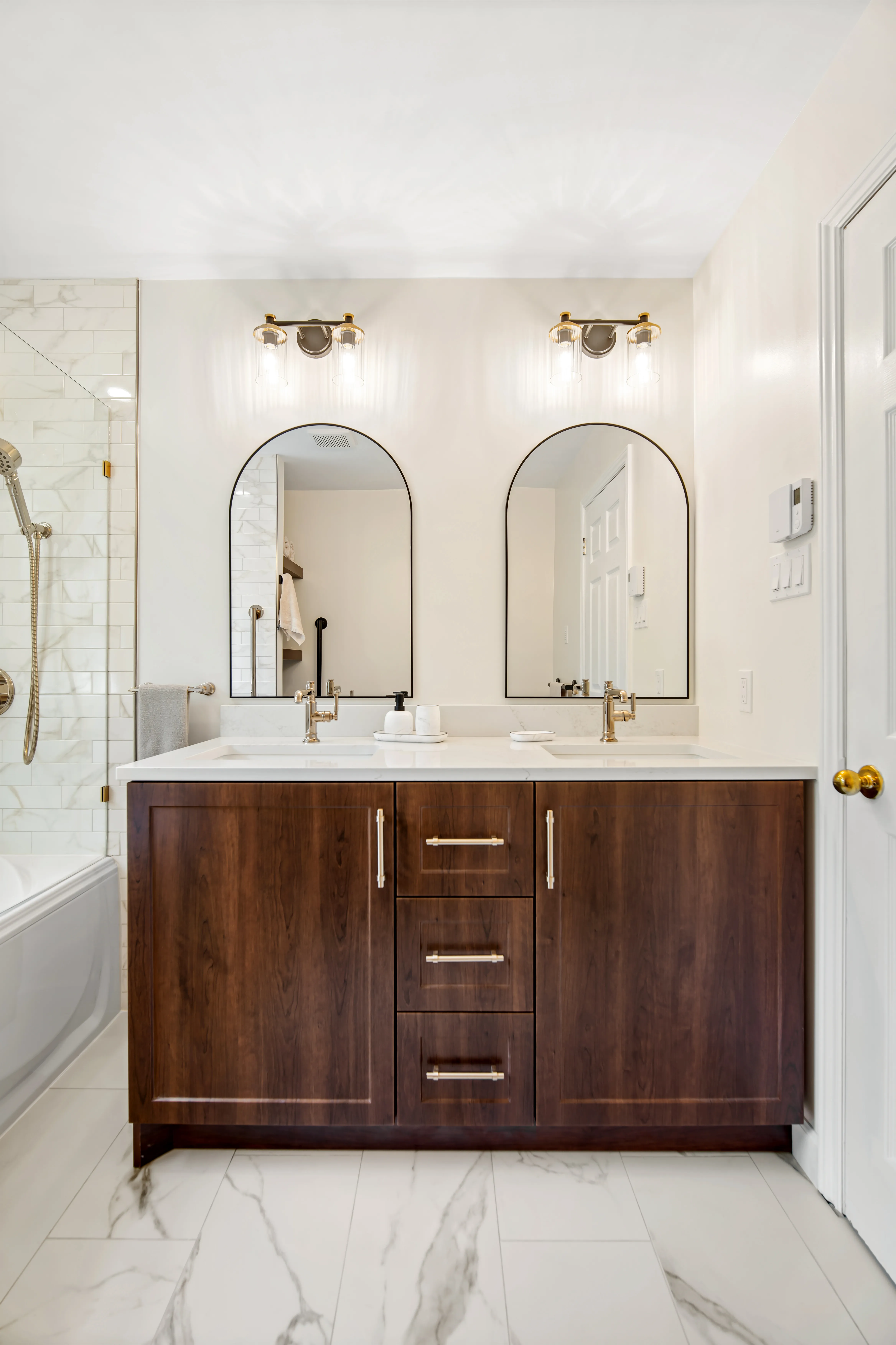This complete ensuite renovation in Bedford, Nova Scotia, reimagined a dated bathroom into a luxurious and highly functional retreat. The project focused on modernizing the aesthetic while significantly improving the layout and amenities to better suit the homeowners' needs within the Halifax area. The original space featured an aging acrylic whirlpool tub and a separate bidet that no longer served the client's lifestyle. Structural and installation issues were also present, including a tub skirt that was beginning to detach at the sides, requiring a secure, long-term fixation solution to ensure durability.