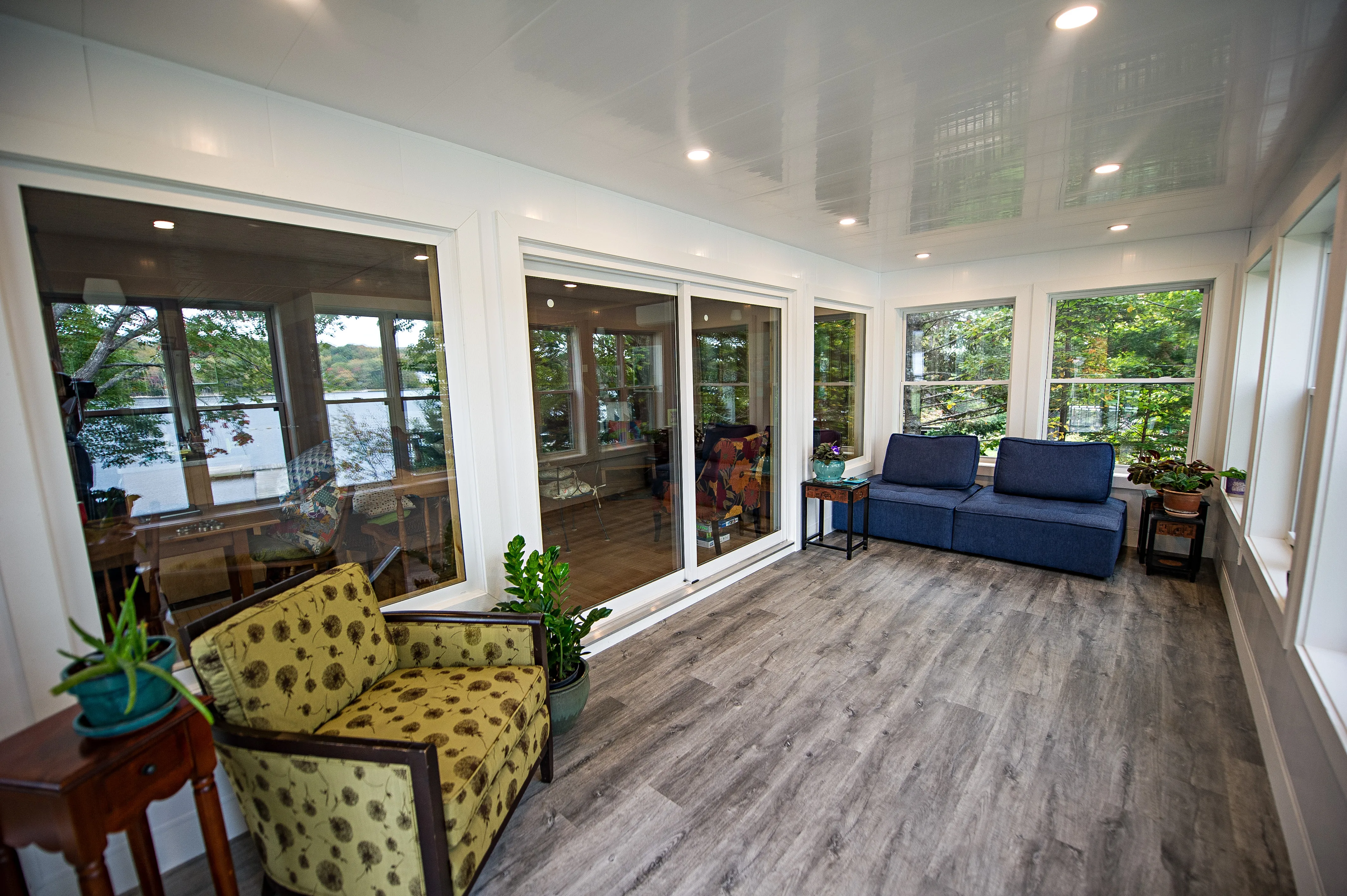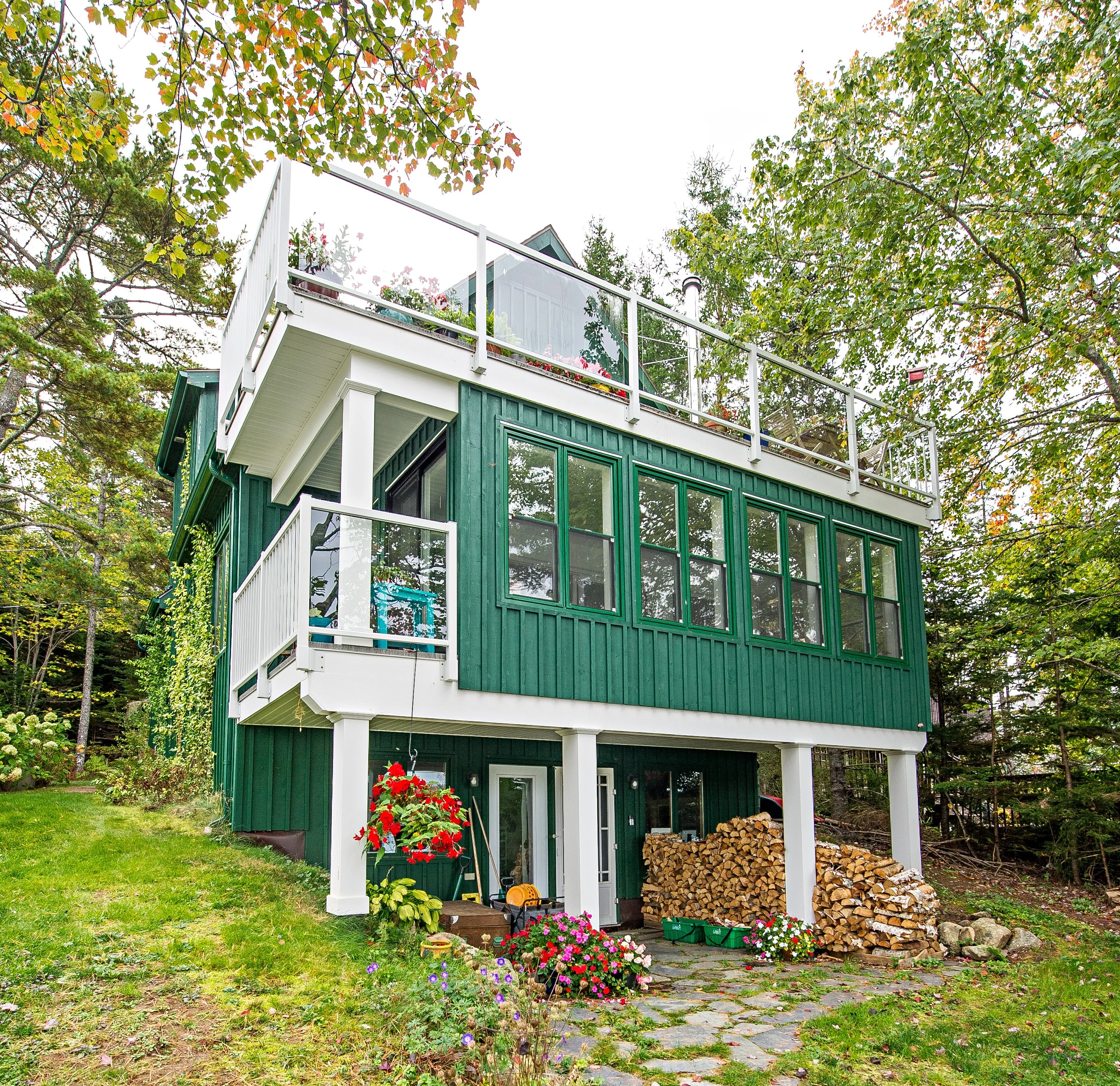 This remarkable project dramatically transformed a waterfront home in Tantallon, Nova Scotia, significantly enhancing the homeowners' connection with their stunning natural surroundings. The renovation centered around a vision to maximize enjoyment of the coastal setting, resulting in the construction of an expansive second-level, year-round sunroom with a covered entrance below, and a breathtaking rooftop terrace above.